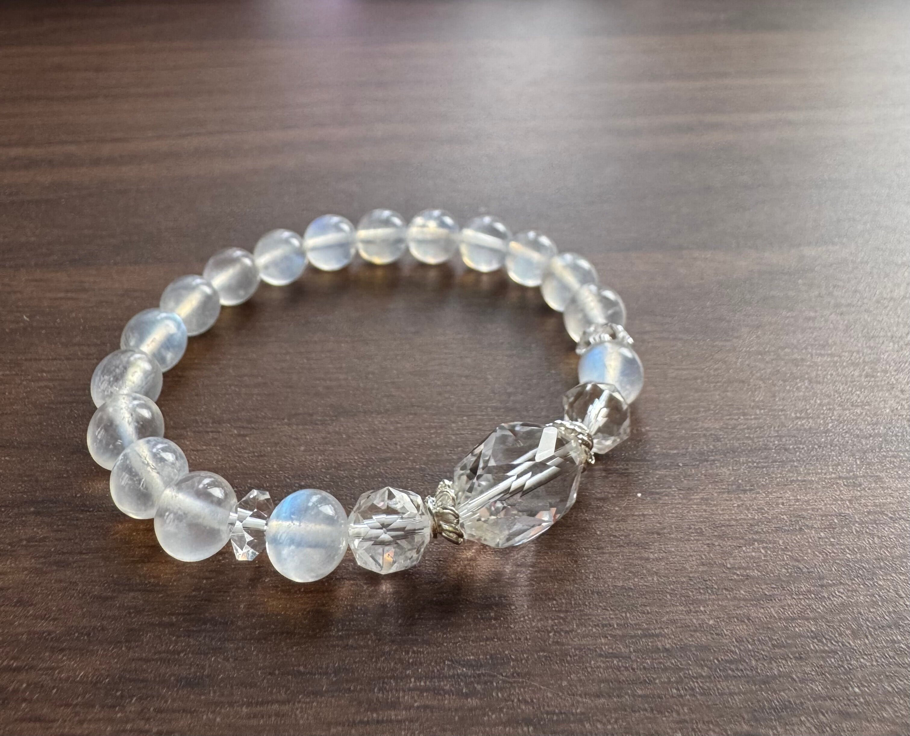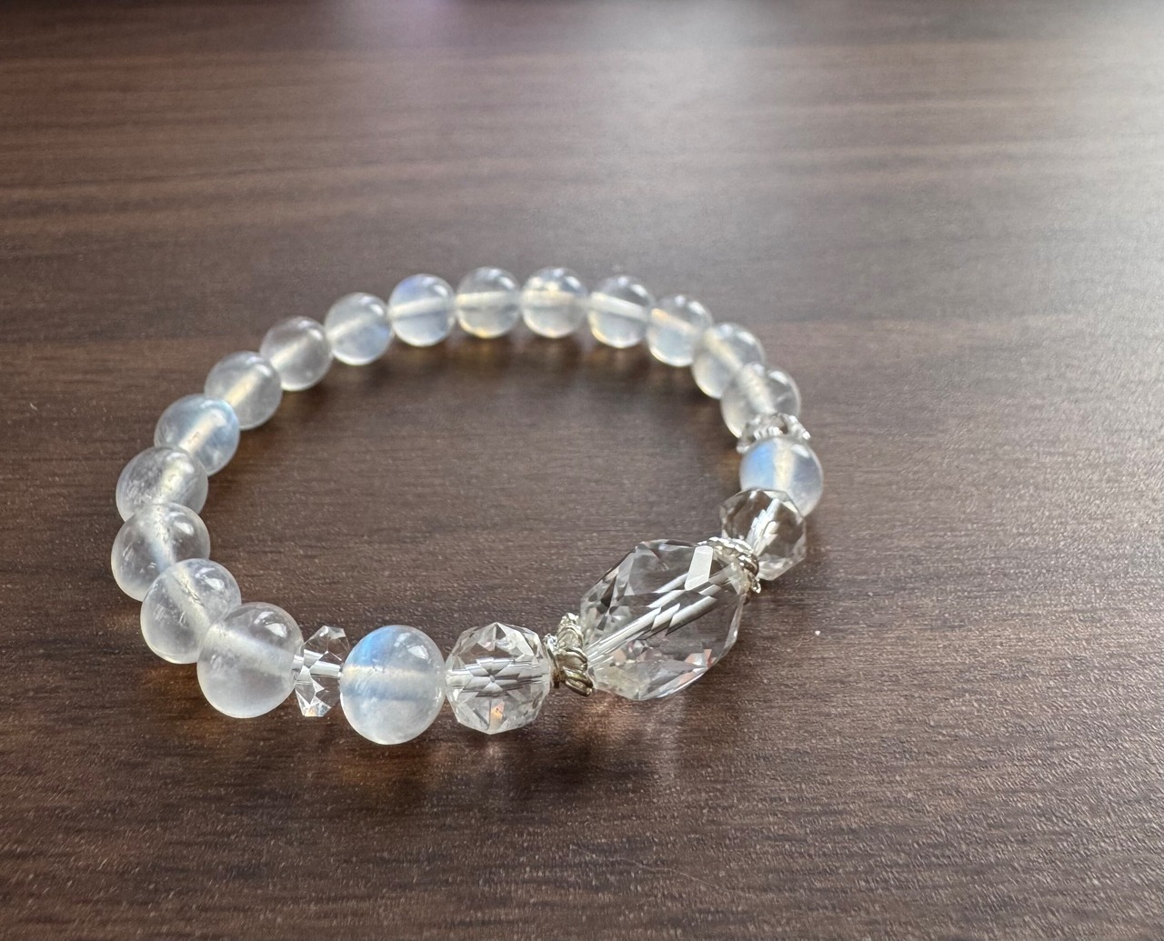 【ときめき叶え石】ブルーシラーが美しい♡ムーンストーンカット天然水晶