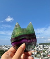 【猫皿・トレイ】フローライト 猫のトレイ アクセサリー置き 浄化アイテム